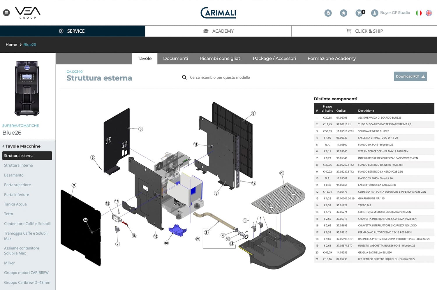Gestire un vasto catalogo di parti di ricambio può diventare una sfida operativa complessa, soprattutto quando si lavora con una gamma diversificata di apparecchiature nel settore HORECA. Carimali.com ha superato questa complessità adottando ULTRASPARE + ULTRAB2B, la soluzione che ha rivoluzionato l’identificazione e l’ordinazione dei componenti, riducendo drasticamente errori e tempi di gestione.